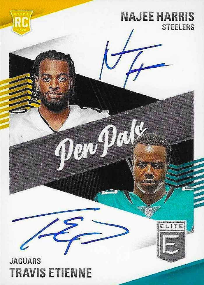 This former Alabama star had back-to-back 1,000 yard seasons (1,224 and 1,466) and scored 39 TDs in just those two years as his team rolled to a number of big wins against strong competition and a national title last year. He was the first RB taken in the draft this year (21st overall) and goes to a relatively productive team that could use a better running game. James Conner led the team in yardage the last three years with 973, 464 and 721 -- nothing impressive in the big scheme of things. He's the starter so we'll see how it goes very soon and he might get even more attention from collectors who like RBs as the other guy on this card is out for the year. They were the only first-round picks for RBs.