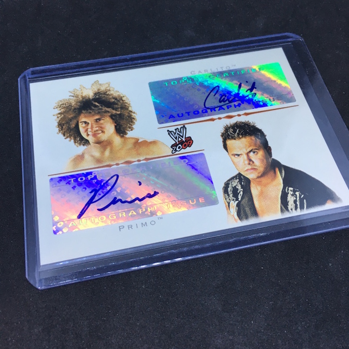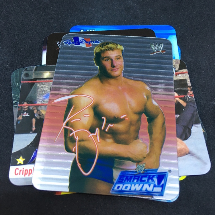 Can't rip into a box or even find a box of some stuff? Try grabbing sets, small lots or small collections and then seeing what you find. (The surprise can be even more dramatic than ripping into a box.) The cost often correlates with what somebody sees as the quality -- the better the lot the higher the price in many instances -- but you never know what you might land when people are dumping old to raise funds for new stuff or just clearing out their collections that they haven't looked at in years. My collecting tastes have been focused a bit in the last year or so with wrestling perhaps taking on a higher profile due to costs vs. stuff from the traditional sports. These are still feeling more affordable and more of a bargain for me compared to the more-volatile traditional sports -- I'm still buying MLB and NFL stuff but perhaps not as much and instead going this direction for the price. This is a selection of just 18 cards from a small hits collection I bought last year -- I averaged about $3 per card here ... these aren't the best finds from the lot but they are good ones. (On the flip side, here's no way I'm finding cheap wax for a lot of the WWE releases seen here ... so that makes this lot even better.) Lots can be found all the time in all sports but they aren't the same ... I like the dig here, too, both in finding them and then digging through them once they arrive.