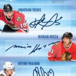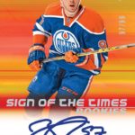 The Basics: The standard box will include three autos, four Retro cards in the 1995-96 design, four Update or Young Guns Update cards, four Authentic Moments inserts, four SP Legends cards and one numbered chase card. ... There will be one Future Watch auto per box, while other signed inserts will include Scripted Stoppers, Great White North and Global Chirography. ... Autographed patch cards will be found two per case with veterans numbered as low as 10 copies and with Future Watch cards showcasing rookies. ... The Retro cards will also have autographs for five former stars. ... Sign of the Times autos will include duals, triples, quads, sizes and eights and be numbered to as few as five copies, while the rookies will be limited to as few as 99. ... New this year will be Authentic Moments auto books that offer a bigger look at big moments from the past year. ... The standard set will consist of 100 cards.
