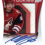 The Basics: 2015-16 Upper Deck Contours hockey cards will include a hit in every pack along with one serial-numbered parallel or Rookie Resume card among the five cards, too. ... Punk's inclusion is one of many celebrity autographs found in the High-profile Fans and Team Fanatics insert sets. ... Also in the mix will be Jumbo Jersey Fabrics and a healthy amount of patches and autos. ... Contours Rookies will have autographs and memorabilia together on cards limited to 199 while they also will have patch versions limited to 35. ... The base set will consist of 100 cards with Blue Red and Gold auto versions that will be as rare as 10 copies per card.