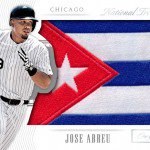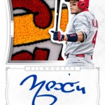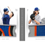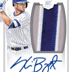 The Basics: The company promises "more on-card rookie material signatures than ever" in this one with more than 80 players signing on. The likes of Kris Bryant, Addison Russell, Joc Pederson, Rusney Castillo, Byron Buxton, Jung-Ho Kang and Noah Syndergaard will be found here. ... Also to be found will be Flag Silhouettes cards with an entire flag patch from a jersey for players from the past and present with each card being a 1/1 creation. ... Also in the mix will be Glory of Their Times cards of past greats with memorabilia as well as cut signature versions. ... Collectors can also look for 42 Tribute, a memorabilia set revolving around games played on April 15, aka Jackie Robinson Day in MLB. ,,, More high-end inclusions are Legends Cuts booklets and Combo Materials booklets as well as bat barrels, bat knobs and Silhouettes with prime, tag, brand logo and printing plate versions.