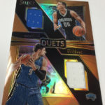 The Basics: The base set will be 300 cards in three tiers -- Concourse (Nos. 1-100), Premier Level (Nos. 101-200) and Courtside (Nos. 201-300). Among the Prizm parallels will be Tie-dyes and Purple diecuts as part of a rainbow ranging from 299 copies down to just one. ... For autograph collectors, there are In-flight Signatures of high-flying players from the past and present, diecut autos and rookie autos. These will have Orange (/60), Tie-dye (/25), Gold (/10) and 1/1 Black versions. On the memorabilia side, there are Throwback Memorabilia cards for 50 players on their past teams as well as Select Swatches and Rookie Swatches. ... Boxes will carry a suggested retail price of $120 and also include 12 Prizm parallels.
