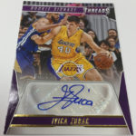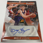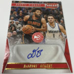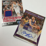 The Basics: What's Signage? Autographs -- and they will be found with a standard set with Gold (/10) and 1/1 Platinum Proofs as well as a second set for just rookies also with parallels. There also will be NBA Legends autos (same parallels) along with Team Threads Diecuts autos, and Team Threads Diecuts Rookie autos. ... On the insert front, there will be 10 sets to chase with the 30 Leather rookies found two per box, while Century Stars will be one per case. ... Hobby-only memorabilia sets will include Debut Threads, Authentic Threads and Century Collection Materials -- all with a patch parallel limited to no more than 25 copies. ... Boxes carry a suggested retail price of $80 and will include 18 insert cards atop the hits.