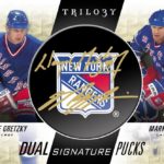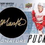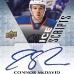 The Basics: A 50-card base set will be capped by RCs that are limited to 999 for standard rookies, 375 for uncommon rookies and 49 for inscribed auto rookies. Each also will have Blue and Black parallels, while a Green Rainbow parallel will be found for rookies with jerseys (/999), patches (/35) and tags (/5). ... Ice Scripts will have autos from past and present stars on Plexiglass, while Signature Pucks have a different feel. ... Also in play will be Triple Relics and Tryptics with themed memorabilia and autograph cards.