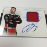 The Basics: Booklet cards will showcase full sponsor patches alongside autos and have six-to-eight autos in some instances. ... There will be on-card autos in several instances, including the Championship Signature Threads, Chase Signatures, Signature Quads, Firesuit Materials and Sheet Metal Materials. ... First-time signers will include Mike Helton and Brian France Jr. ... These boxes carry a suggested retail price of $500.