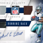 Box basics: One Rookie Premiere triple material autograph, one multi-piece memorabilia card, two other autographs and one other memorabilia card per three-pack box (10 boxes per case)