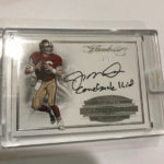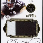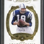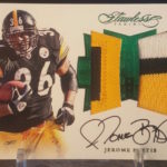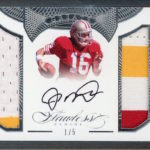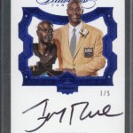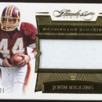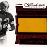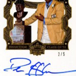 The Basics: The Flawless Cuts autos will include legendary names such as Jim Thorpe, Vince Lombardi, Knute Rockne, Derrick Thomas, Johnny Unitas, Bobby Layne and Walter Payton to name a few. Also in the auto lineup are Flawless Finishes and Memorable Marks -- sets that will include clutch plays and memorable players. Among them will be Franco Harris John Elway, Ben Roethlisberger, Dick Butkus, Bo Jackson and Warren Sapp to name a few. ... The rookies are also heavily found here with Rookie Patch Autographs with patch cards, Rookie Inscriptions and Shield Signatures that should include the newcomers along with past stars. ... Also inked will be Great Patches Duals and Benchmarks. Some of the new signers this year include Jim Brown, Aaron Rodgers, Randy Moss, Calvin Johnson, Ray Lewis, Ed Reed, Jack Lambert and Jimmy Johnson. ... The new gems will be Team Gems that use a number of stones to accent team logos and also an NFL Shield. These will be 1/1 creations. ... Inserts will have a number of parallels -- Silver, Ruby, Sapphire, Emerald and Platinum. ... The boxes carry a suggested retail price of $1,250.