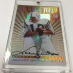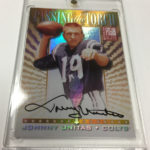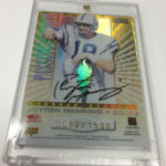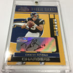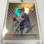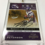 The Basics: The rookie autographs here will be limited to no more than 99 copies with four parallels as rare as one copy for 25 top rookies from the current class. The base cards are limited to just 75 copies with four parallels as well. ... Originals inserts will include a 2000 Contenders Tom Brady auto RC as well as a 1998 Peyton Manning auto RC -- they won't be the only Rookie Ticket autos to be found here. Other previously released cards include 1999 Donruss Elite Passing the Torch autos of Johnny Unitas, Walter Payton, Manning and Barry Sanders to name a few. ... Among the Recollection Collection autograph cards will be Adrian Peterson National Treasures cards as well as other past hits such as Donruss All-time Gridiron Kings. ... A list of these past inclusions from the past was not released. ... Boxes carry a suggested retail price of $200.
