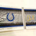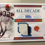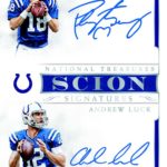 The Basics: On-card autos will be found for the jumbo rookie patch autos, which will be limited to 99 copies. There will be brand logos, jersey numbers and 1/1 NFL Shields. Also in the mix will be 10th Anniversary RPAs printed on acetate and limited to only 10 copies and 1/1 NFL Shields. ... There will be Retro Treasures cards of rookie patch autos from the last 10 years printed on acetate (/10) and 1/1 Super Prime versions. There will be All-Decade Signatures and All-Decade memorabilia cards limited to just 99 copies along with Pro Bowl Materials, Treasure Chest and Treasured Signatures books. The books will have between eight and 12 autos and be limited to no more than five copies. Scion Signatures will pair past and present autos (/10 or less) while Colossal Signatures will spotlight notable players with autos and mem as expected with the brand. ... Gridiron Graphs also will showcase ink in book form. ... Boxes carry a suggested retail price of $500.