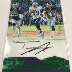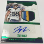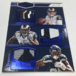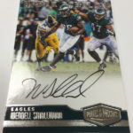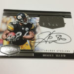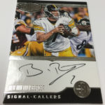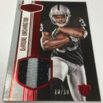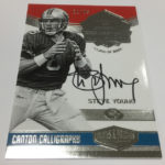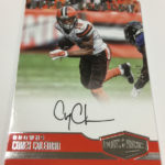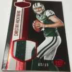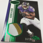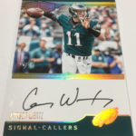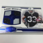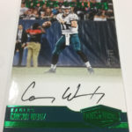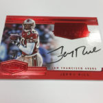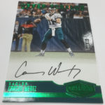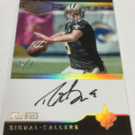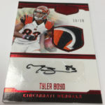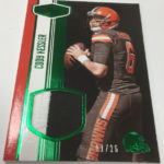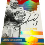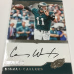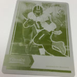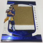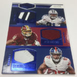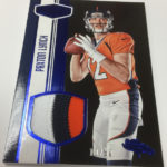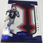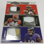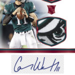 The Basics: There will be on-card autos in the Canton Calligraphy, Signal-callers and Game-changers sets and jumbo memorabilia in Full Coverage and Double Coverage, while Rookie Quad jerseys will carry impressive potential. ... Rookie Patch Autos will have Gold and Red parallels . ... Boxes carry a suggested retail price of $100.
