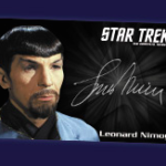 The Basics: The base set will feature gold stamping and is diecut, while a 50-card "Mirror, Mirror Uncut" set will revisit the memorable episode with 100 photos and a 70-card "The Cage Uncut" insert set will examine that pilot episode. Other nine-card insert sets will include U.S.S. Enterprise concept art, Heroes of the Enterprise, "Mirror, Mirror" Heroes and an In Memorium tribute to Leonard Nimoy. He will also appear on case-topper cards. ... Incentive cards for case-buyers include a Silver Signature auto of Nimoy for every six cases purchased, a dual of Nimoy and William Shatner for nine cases and an Archive Box with an extra "Mirror, Mirror" card of Marlena and a set of printing plates for one card in the product.