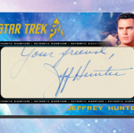 Among the deep list of signers in 2016 Rittenhouse Star Trek 50th Anniversary will be William Shatner, Nichelle Nichols, George Takei, Walter Koenig, Grace Lee Whitney, Joan Collins, Teri Garr, Clint Howard, Yvonne Craig and Sally Kellerman. There will be Silver and Black versions of the autographs with one of each type in each box. ... Cut autographs will include Jeffrey Hunter, Susan Oliver and Jill Ireland among others.