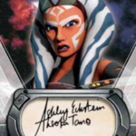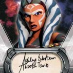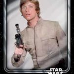 The Basics: The basic set will consist of 100 cards with new images found on the original Card Trader design. Parallel cards found in every pack will unlock a parallel card in the app. There are Blue (one per pack), Red (one in four), Green (/99), Orange (/50), Battle Damaged (/10) and Slave I (/5) cards. ... Insert cards will include Film Quotes, Classic Artwork, Galactic Moments, Reflections and Topps Choice. ... Digital Autograph cards found in packs will unlock autographed cards in the app as well. There will be basic (/25), Red (/10) and Gold (/5) auto cards. There also will be Trader Loot cards that allow finders to unlock a pack of cards on the app. They will be found one in every 24 packs in the physical packs.
