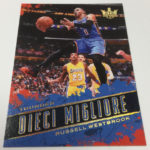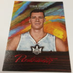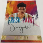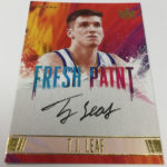 The Basics: Each box will include two rookies atop the hits and in some cases there will be Hot Boxes with extra autographs and memorabilia cards. Rookies will have four types of RCs in this one with different designs and tiered print runs. Among the autographed possibilities are 5-by-7 box-topper autos (if not signed there is an unsigned one), Heir Apparent, Fresh Paint and Fresh Paint Duals. Among the signers for the box-toppers are Kobe Bryant, Kevin Durant, Pau Gasol, Andrew Wiggins, Damian Lillard and Kyrie Irving. ... On the memorabilia side one of the options will be Art Nouveau cards and those will have a rarer nameplate version. ... A one-per-case Aurora insert will focus on big names in the league today, while Dieci Migliore inserts also will be rare and focus on 10 of the best in the league. Overall, inserts will be found one per box and other inserts will include Points in the Paint, Emerging Artists and Blank Slate. ... Just like last year, boxes carry a suggested retail price of $72.