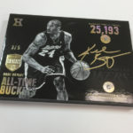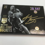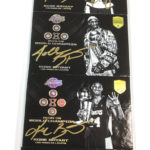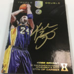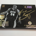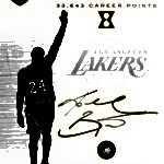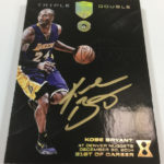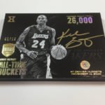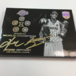 The Basics: These boxes will pack nothing but autographs, memorabilia, diamonds or precious metal cards along with an autographed checklist book that shows every card in the set. ... Signature Sketches Diamond cards will spotlight Kobe's Nike shoes, while each of his NBA titles will have Crown Jewels Diamond cards that will include gems and ink. All of his seasons also will get their own Five Fold booklets, while there will be Championship Magnet cards that spotlight his NBA titles. His All-time Buckets Gold and Platinum cards will note scoring milestones with and without autos or diamonds, while diamond cards also will be found building the Lakers logo. Rounding things out will be Kobe Farewell cards and Giant Memorabilia cards.