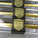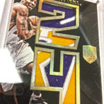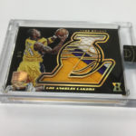 In addition to the redemptions, Panini clarified any confusion about its metal and diamond cards in the product. The metal cards in every box will include either one troy-ounce of gold ($1,320) or one troy-ounce of Platinum ($1,533). The company also noted that "most cards will feature multiple embedded diamonds" and that "there are multiple cards in the run that include more than 30 diamonds each." As seen in the gallery below, they will create either the Mamba logo or Lakers logo.