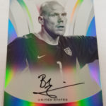 The Basics: There will be four base set short-prints, four inserts, four parallels (/199 or less) and two autographs per 40-card box here with a number of retired greats mixed into the action and just eight current players in the mix -- Lionel Messi, Cristiano Ronaldo, Wayne Rooney, Clint Dempsey, Christian Pulisic, Rafael Marquez, Gianluigi Buffon and Manuel Neuer. ... Pele cards will be found one per case and all 10 cards in the set will include a piece of a match-worn Santos jersey. Autographs will be found on the last five cards in the set. ... There will be on-card autos from Pele, Michael Ballack, Alan Shearer, Eric Cantona, Luis Figo, Mia Hamm, Abby Wambach, Gabriel Batistuta, Miroslav Klose, Steven Gerrard, Andriy Shevchenko, Raul, Peter Schmeichel and Patrick Vieira to name a few. ... Boxes carry a suggested retail price of $220.