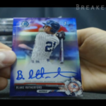 For the standard prospect card parallels, there will be Silver, Purple, Blue, Gold, Red (/5) and Black (1/1) versions to chase. All will be numbered except for Silver.