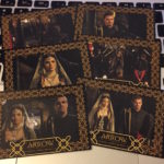 What's Buzz-worthy: This 81-card set visually chronicles 23 episodes from Season 3 of the series, which enters its seventh season this fall. The cards showcase two images per card (front and back but no info) with some episodes having several cards. That's got its benefits and drawbacks depending on how familiar one is with the series. (For beginners, that may not be a plus.) The insert lineup is the standard formula with characters, puzzles and parallels alongside the hits, while this one also includes redemptions for full prop pieces like swords, rings and arrows. Those are impressive but immensely rare at one in every 13,742 packs. There are a few unusual memorabilia cards here along with duals that also help add to the variety. All in all, this is a nice release that packs plenty without having autographs from the show's top star, Stephen Amell. He's in the memorabilia lineup as are many others and this, generally speaking is a break with a lot of potential and fun if you land some of the tougher or more unique cards.