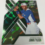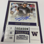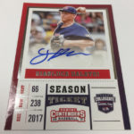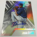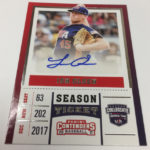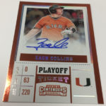The Basics: There will be on-card autos for the best 2017 draft picks in this release and those cards will have 14 parallels limited to no more than 100 copies. Among them will be tie-dye and Status Diecut Gold. ... There also will be Dominican Prospect League cards as well as USA Baseball team members in this product -- a mix of base cards, autos and Silhouettes for the DPL players and Tickets and Silhouettes for members of the USA Collegiate National Team, 18U and 15U squads. ... Also in this one will be jumbo, dual, triple and quad materials cards. ... Silhouette auto cards will have Emerald, Blue and Gold cards among the six-parallel rainbow there all limited to no more than 149 copies as well as dual-player memorabilia cards. ... Also in the autograph mix here will be Contenders College Tickets with Championship, Playoff, Cracked Ice and printing plate versions. ... Five-card packs will carry a suggested retail price of $20 ($100 per box).