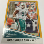 The Basics: The base set will consist of 100 veterans, 100 legends and 100 new rookies with the newcomers found one per pack. ... Among the autograph cards to chase here will be Stadium Stars, Significant Signatures, Classic Combos and buyback autos (two per case) from past releases. ... Memorabilia cards will include Canton Collection and Classic Combos, which will have prime parallels limited to no more than 50 copies. ... Among the parallels will be blank backs, no names and cards that show a player's full name as well as Sepia short-prints that will be found one per box. No other details were released. ... These will carry a suggested retail price of $5 per pack or $70 per box.