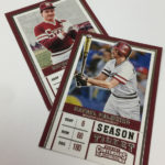 The Basics: These 18-card packs will include a mix of inserts and parallels with some of the first autographs from top prep and college stars in this year's draft. There will be Draft Tickets, Prospect Tickets, International Tickets and more. There will be on-card autos for Rookie Photo Shoot, or RPS, Draft Tickets for players in the first two rounds. There also will be Cracked Ice versions limited to just 23 copies. Also in play will be base parallels that are limited -- Diamond Tickets (/15), Building Blocks Tickets (/10) and Fame Tickets (/5). ... The base set of Season Tickets will be just 25 cards with past and present stars. ... Among the signed inserts will also be Alumni Ink, School Colors Signatures and Collegiate Connections dual autos. ... These will carry a suggested retail price of $20 per pack ($120 per box).