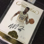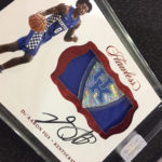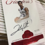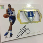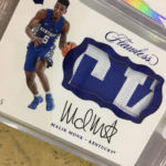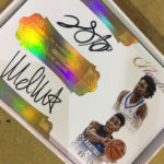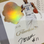 The Basics: Diamond cards are the base cards here (/20) with Ruby (/15), Sapphire (/10), Emerald (/5) and 1/1 oversized diamonds. All autos will be limited to no more than 25 copies and on-card auto sets will include Rookie Patch Autographs, Rookie Autographs, Dual Patch Autographs, Patch Autographs, Flawless Team Logo Signatures, Flawless Dual Signatures, Dual Diamond Memorabilia Autographs, Premium Ink and Flawless Team Slogan Signatures. ... Among the patches of RPAs will be NCAA logos, team logos and brand logos. ... Some briefcases in this one will be hot boxes of sorts with all the same team cards for Kentucky and UCLA. ... Among the new autos here will be Lonzo Ball, Markelle Fultz, Jayson Tatum, Josh Jackson, DeAaron Fox, Jonathan Isaac, Dennis Smith Jr. and Malik Monk to name a few. ... Team Slogan Signatures (/25 max) will include team slogans on cards as written by the signers. ... Premium Ink autos will include Emerald (/5) and 1/1 Black versions, while this one also will include Team Gems that enhance school logos with a number of gems. ... Boxes will carry a suggested retail price of $1,500.