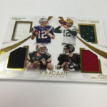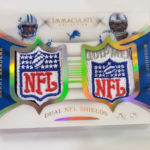 The Basics: The base set will consist of 100 cards limited to 99 copies with Gold (/5) and 1/1 Platinum parallels just like last year. Also in the mix will be Immaculate Dual and Triple autos and Immaculate Moments autos that will be limited to 25 copies. Rookie patch autos will be limited to 99 copies with 1/1 NFL shield and laundry tag cards. Also in this one will be Super Bowl Moments autos (/25 max) and new Dual Eye Black autos (/15 max) grouping teammates and past/present players. These will have gold-ink parallels, too, as rare as a single copy. Also found here will be premium patch autos (/99) with rarer NFL shield versions along with Immaculate Honors and Immaculate Shadowbox Signatures. ... On the memorabilia side, there will be Dual Shields (/1) and jumbo memorabilia cards that will include footballs, cleats, helmets, laundry tags, gloves and plenty more. ... Boxes will carry a suggested retail price of $400.