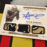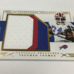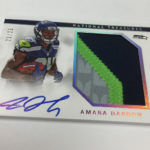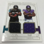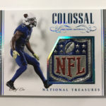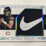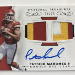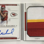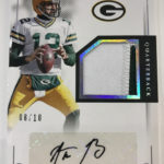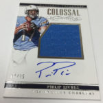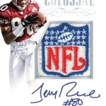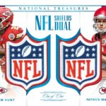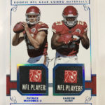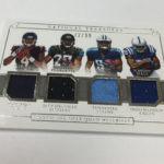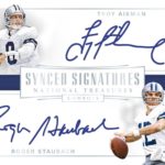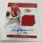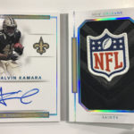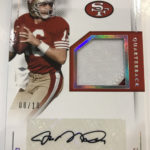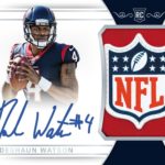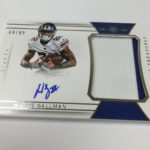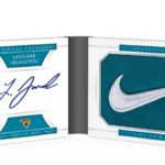 The Basics: On-card autos will be found for the jumbo rookie patch autos, which will be limited to 99 copies. There will be brand logos, team logos, jersey numbers and 1/1 NFL Shields. For veteran players, there will be captain's patches, Nike logos, NFL shields, dual shields, jumbo logos, Pro Bowl jerseys anreven dual brand logo cards. ... There also will be Synced Signatures dual autos for 20 legendary duos with these on acetate and limited to no more than 25 copies, while NFL Greatest Signatures return from a five-year benching to spotlight notable players. ... There will be as many as 12 autographs on Treasure Chest booklets and eight autos per Treasured Signatures books, while there also will be jumbo patch book, Gridiron Graphs and jumbo patch auto books. ... Also in the mix will be The Future autos (/25 max) signed on acetate, Material Treasures Signatures -- Joe Montana, Peyton Manning, John Riggins, Michael Vick, John Elway, Dak Prescott and J.J. Watt among them -- and Colossal Signatures that will be the home to laundry tags, logos, shields and more. ... Another high-end feature will be NFL Shield Dual cards with pairings that will include Drew Brees/Michael Thomas, Mitchell Trubisky/Jordan Howard, Deshaun Watson/DeAndre Hopkins, Dak Prescott/Ezekiel Elliott and Aaron Rodgers/Jordy Nelson. ... Rookie Jumbo Prime Signatures books will also be found with vertical variations. ... Boxes once again carry a suggested retail price of $500.