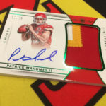 What's buzz-worthy: Panini America's highly collected high-end brand returns with an array of big hits from the NFL's past as well as the biggest names of the NFL at present. (Click on the card up top for a closer view.)