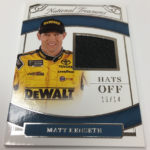 The Basics: Booklet patch autos will once again be limited to two or fewer copies but with several versions, including nameplate patches, associate sponsor patches, series sponsors, car manufacturers and flag patches among the lineup. There also will be dual auto-mem cards pairing drivers with their crew chiefs as well as others and six-piece cards that include several types of memorabilia along with their ink. Legendary Material auto-mem cards will include the biggest names in NASCAR history with ink and memorabilia, while there also will be jumbo tire autos, dual-memorabilia autos and a set of Winning Material Signatures that focuses on the most-successful drivers in history. ... These boxes once again will carry a suggested retail price of $500.