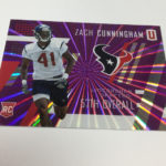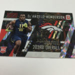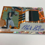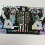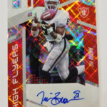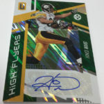 The Basics: Atop the hits, every box will include three serial-numbered cards, one insert per pack, three parallels per pack, two base cards per pack and two rookies per pack. Panini promises new stocks and parallels with more numbered parallels. The 200-card base set will have 10 different parallels and there will be 100 rookies also with 10 parallels. ... On the ink front, there will be Rookie Autographs (100 cards) with eight parallels, High Flyers Signatures and Rookie Jersey Autos that will have eight parallels with numbering ranging from 149 copies down to one. ... On the memorabilia side there will be Rookie Stitches and Zoned In. Each will have patch versions and parallels with NFL shields, tags, logos and more. ... Boxes will carry a suggested retail price of $96 ($12 per pack). Rookies shown here are last year's class for mocks only.