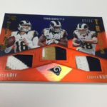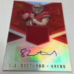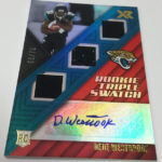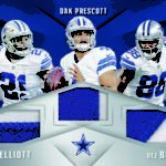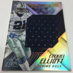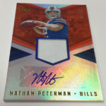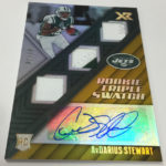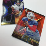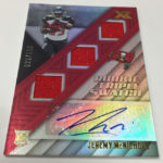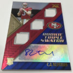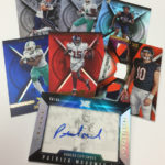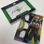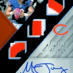 The Basics: Every box will include one autographed jersey as well as one rookie, veteran or retired auto and one rookie jumbo or triple-swatch card. In addition to the hits, there will be one insert, four parallels, four base cards and two Rookie Cards per box. ... Triple and jumbo swatch autos will be limited to no more than 199 copies, while there will be dual and triple auto swatches pairing rookies with greats -- those will be limited to just 20 copies. Also in the mix will be Rookie Jumbo Materials, Maximal Materials and Team Trios Materials -- these will be limited to 99 copies -- while there will be autographed shadowboxes called Luminous Endorsements limited to the same volume. Inserts, parallels and rookies will be limited to no more than 299 copies. Among the Jumbo Materials cards will be Nike logo patches, laundry tags, gloves and NFL shields.... Boxes will carry a suggested retail price of $100.