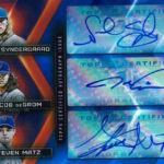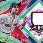 The Basics: Blaster boxes of this one will include Gold Minted parallels, while jumbos include Blue Chip parallels of a base set that consists of 200 cards -- a mix of past and present players. The set also will have Onyx, Flame, Orange (/299), Green (/199), Purple (/99), Magenta (/25) and 1/1 Inferno parallels. ... Insert sets will include Fired Up, Golden Gloves, Monikers, Flame Throwers and Walk it Off. ... The Relic lineup is simple with just one set, Fire Relics, and then an autographed patch set to go with an autograph set, a dual-auto (/20) set and a triple-auto (/5) set. The standard autos will have Green (/75), Purple (/50), Magenta (/25) and 1/1 Inferno parallels. ... Auto Relics will have Magenta (/10( and 1/1 Inferno parallels, while standard Relics will have four -- Green (/75), Purple (/50), Magenta (/25) and 1/1 Inferno. ... Rookie Cards of note here will include Matt Olson, Aaron Judge, Andrew Benintendi, Yoan Moncana, Cody Bellinger and Alex Bregman. ... Notable autos in this one will include Judge, Mike Trout, Bryce Harper, Bellinger, Carlos Correa, Ernie Banks, Greg Maddux, Hank Aaron, Kris Bryant, Ken Griffey Jr., Manny Machado and Sandy Koufax to name a few. ... You can see everything on the checklist linked above.