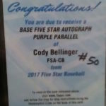 The Basics: Each standard autograph that will show either rookies, veterans or legends will have a Purple (/50), Blue (/25), Green (/15), Gold (/10), Orange (/5) or 1/1 Red parallel. ... Silver Signatures and Golden Graphs are back with will spotlight notable names with the same rainbow as last year -- Purple (/25), Blue (/20), Green (/15), Gold (/10), Orange (/5) and 1/1 Red versions. ... Derek Jeter autographs will be in the mix as part of the Heart of A Champions auto set that will have no more than 35 copies per signer and have a 1/1 parallel, while Five Star Signatures will have inscriptions and be limited to no more than 20 copies. ... Also in play will be Auto Jumbo Patches (numbering will vary) each with a Gold (/25), Silver Rainbow (/10) as well as Team Patch, MLB logoman, Laundry tag and Majestic patch parallels -- all 1/1s. ... Also 1/1 creations will be Five Star Cut Autos with notable names in MLB history getting another look on cardboard.