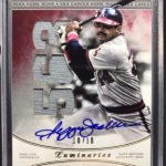 The Basics: Every card will be encased signed and limited to no more than 15 copies. Among the standard autos will be Home Run Kings (/15) with Red (/10), Blue (/5) and 1/1 Black parallels. There will be 50 (not a typo) autos on one 1/1 card -- Home Run Kings Ultimate Book -- while the Home Run Hitters Ultra Book (also a 1/1) will have the "top home run hitters in the game." Also in play will be Hit Kings and Masters of the Mound with the same rainbow, along with other books -- Hit Kings Ultra Book (10 autos), Hit Kings Ultimate book (40 autos), Masters of the Mound Ultra (10 autos) and The Greatest Ultra Book (30 autos). ... Auto Relics will include Home Run Kings with Red and Black parallels (same volume) and Auto Patches (/5) and a 1/1 Black, and then Home Run Kings Auto Patch Dual and Triple Books along with Hit Kings Auto Relics and patches (same parallels). ... It also will include a Hit Kings Autograph Patch Dual Book Card (1/1), Masters of the Mound Auto Relics and Patches as well as Dual Books and Letter Books. Rounding things out will be Cut autos, cut auto Relics and cut auto bat knobs -- all 1/1 creations.