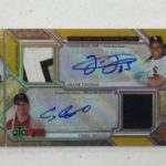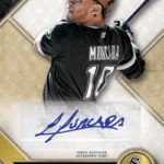 The base set size was not revealed but it will include a rainbow of eight parallels -- Amethyst (/TBD), Emerald (/TBD), Amber (/TBD), Gold (/99), Onyx (/50), Sapphire (/25) and 1/1 Ruby as well as printing plates. ... Autographed rookies will be signed on-card (/TBD) with Emerald (/50), Gold (/25), Sapphire (/10) and 1/1 Ruby and printing plates. Meanwhile, Rookies and Future Phenoms Auto Relics will have three swatches and an auto with a starting point of 99 copies and then Silver (/75), Emerald (/50), Onyx (/35) and 1/1 Ruby, Wood and printing plate parallels.