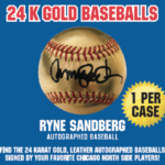 The Basics: Each 12-box case will include three current Chicago Cubs, three Hall of Famers who played for the team, five past fan favorites and one 24-karat gold leather signed ball. All baseballs will be limited and numbered to no more than 48 copies with holograms that link them to this product. ... Among the notable inclusions here is a Grand Treasure 16-by-20 autographed photo and Treasure Tickets for autographed Ernie Banks jerseys. ... The 2016 World Series team members signed on World Series balls for the release as well, while team legend Ryne Sandberg signed and inscribed 23 balls with extra Cubs flair for this one. ... Among other signers teased for this one include Kris Bryant, Jon Lester, Ben Zobrist, Billy Williams, Andre Dawson, Mark Grace, Kerry Wood, Kyle Schwarber, David Ross, Dexter Fowler, Anthony Rizzo, Lou Piniella, Lee Smith, Mark Prior and Fergie Jenkins. ... Just 108 cases will be made and these will carry a suggested retail price of $140 per box.