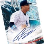 The Basics: There will one parallel and four autos per box with a number of patterns to be found in this one with each case including a Tides of Youth autograph variation as well as an extra autographed insert. ... As usual for Tek brands, there will be a number of patterns to chase for every card. For Pattern One alone there will be a Purple Rainbow (/150), Green Rainbow (/99), Ocean Blue Tidal (/75), Gold Rainbow (/50), Orange Magma Diffractor (/25), Red Orbit Diffractor (/10), Black Galactic Diffractor (1/1) and printing proofs in the rainbow. No parallels have been teased for other patterns over than there being 1/1s for two of them, a SpecTEKular Diffractor and a Black Galactic Diffractor. ... Insert cards will all be numbered to no more than 99 copies with a a set called Tides of Youth with Ocean Blue (/25) and 1/1 Black parallels, PyroTEKnics with the same versions and First Bowman Tek cards that spotlight players' first cards from 2018 Bowman in a Teky way also with those parallels. ... Those three insert sets will have autographs while standard auto cards will have eight versions to chase -- Purple Diffractor (/TBD), Green Rainbow (/99), Ocean Blue Tidal (/75), Gold Rainbow (/50), Orange Magma Diffractor (/25), Red Orbit Diffractor (/10), Black Galactic Diffractor (1/1) and 1/1 Printing Proofs.