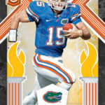 The Basics: There will be 30 base cards of current NFL players in their college threads, 30 draft picks cards, two base parallels, two draft picks parallels, one insert parallel, five inserts and five autographs per hobby box. Hobby-only inserts will include autographed versions of College Ties, Elite Series, Primary Colors and Chain Reaction as well as Passing The Torch autos that will include past college legends such as Charles Woodson, Tim Tebow and Earl Campbell. Parallels will include Aspirations with Purple, Red, Blue, Gold, Emerald and Teal versions. There also will be Status Diecut cards with six parallels numbered to no more than 99 copies. The Draft Picks parallels will also include Aspirations and Status Diecut Purple, Red, Blue, Gold, Emerald and Teal parallels -- all maxed out at 99 copies -- while autograph parallels are also 99 or less. ... Hobby packs carry a suggested retail price of $20 ($100 per box).