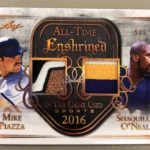 The Basics: There will be fewer than 200 cases made for this one with every case including a Shohei Ohtani autographed memorabilia card. Set inclusions here will include 3,000 Hit Club, 500 Home Run Club, All-time Enshrined, Award Seasons, City of Champions Classic Rivals, Draft Class History, Enshrined, The Chosen Few, Legendary Kicks, MVP Eights, Franchise Fabrics, The Nickname Hall of Fame, Reflections, Signatures (single, dual and triple), jumbo patches, Fantasy Team Eights, Super Patch Signatures and Team Eights. Some legendary names will be found on a number of these cards, which will have multiple memorabilia pieces on many of them.