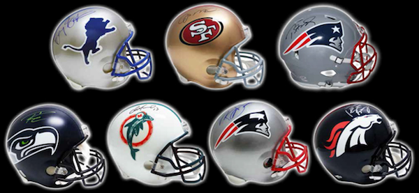 The Basics: Among the players teased for this one? Tom Brady, Dan Marino, Joe Montana, Joe Namath, J.J. Watt, Emmitt Smith, John Elway, Barry Sanders, Peyton Manning, Deshaun Watson, Russell Wilson, Roger Staubach, Drew Brees, Jim Kelly, Dak Prescott and, yes, Affleck who looks like he's on a New England Patriots helmet. ... The Dallas Cowboys' Triplets -- Smith, Troy Aikman and Michael Irvin -- are among the multi-player signed replica-model helmets that are possible in this one.