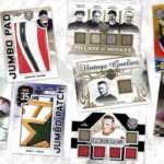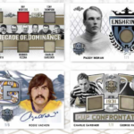 The Basics: There will be three Metal Masked Men cards per box along with the hits, which will be a mix of ink and memorabilia from a lineup that includes at least 13 different sets. There will be 300-Win Club, Cup Confrontations, Decade of Dominance, Enshrined, Goalie Graphs, Goalie Gear, Jumbo Goalie Patch, Jumbo Pad, Masked Men Metal, Masked Woman Metal, Pillars of Hockey, Signature Goalies and Vintage Goalies cards to be found.