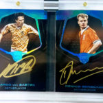 The Basics: It's not just ink to be found here as there will be "enormous patches, certified diamonds, and precious metals such as silver, gold and platinum" in the mix as well as cut autos from a number of soccer legends. This one will be included in a "specially constructed wooden box while all cards are printed on thick premium cardstock and sealed in one-touch cases." This one will include autographs from Ballon d’Or winners as well as Champions League legends and "heroes whose World Cup moments will live on for eternity." ... There are four 1/1 auto sets to be found here -- Transcendent Talents, Double Diamond Autographs, Quad Diamond Autographs and One of a Kind -- while all other auto sets will have 1/1 Platinum parallels. ... A first here will be autographed cards with pieces of match-used cleats -- Stud Signatures will include for Cristiano Ronaldo, Lionel Messi and Harry Kane among others. ... Autographed booklets will make their debut here, too, with Passing the Torch and Team Tandems cards as well as Octet Signature Booklets that will have eight autographs. The confirmed signers list is stout and can be seen at the end of the gallery below.