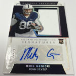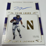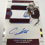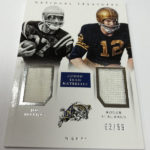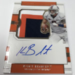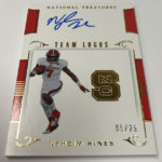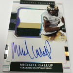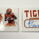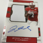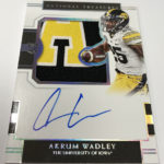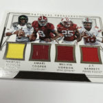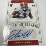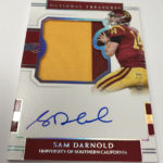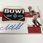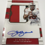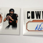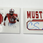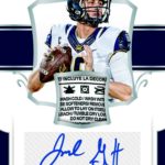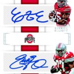 The Basics: There will be on-card autos to chase in College Material Signatures, College Silhouette Signatures and Team Logos sets along with the familiar conference, bowl and championship logo patches that will be found in Silhouette Signatures and combo player booklet cards. There will be College Materials Signatures that will have oversized prime patches for top rookies this season as well as autos and memorabilia cards for past and recent greats in the Materials Signatures sets. ... The base set will once again consist of just 25 cards (/99) with more parallels -- Silver (/49), Red (/25), Gold (/10), Emerald (/5) and 1/1 Black. ... There also will be Notable Nicknames autos, Team Logo Shield Signatures and cut autographs in the mix as well as dual-auto cards for players from the same schools. ... Boxes once again carry a suggested retail price of $400.