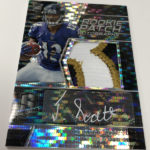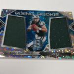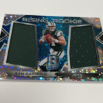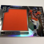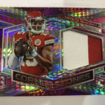 The Basics: New this year will be Neon Purple and Neon Marble autographs in a product that Panini says will include "more on-card autographs than ever before" and more 1/1s. ... Rookies will be found in the Aspiring, Rookie Patch Autos and Radiant Rookie sets (all /199). Each of these sets will have 12 parallels -- Blue (/99), Green (/75), Purple (/50), Pink (/25), Black Light (/10), Orange (/5), Marble (/4), Nebula (/2) and 1/1 Gold, and laundry tag cards with NFL shields, Nike Swooshes and NFL Players logo cards (one of each type per player). ... Veterans and retired stars will be found in Illustrious Legends and Super Bowl Champion Signatures sets (/99) that will have Blue (/50), Green (/25), Pink (/15), Orange (/5), Marble (/4), Nebula (/2) and 1/1 Gold parallels for each. ... Also in the mix will be rookie dual patch autos (/35), with Purple (/20), Pink (/15), Black Light (/10), Orange (/5), Marble (/4), Nebula (/2) and 1/1 Gold, NFL shield, Swoosh and NFL Players logo cards. ... For memorabilia only there will be Epic Legends, Monumental Memorabilia, and Building Blocks all with similar rainbows. ... Packs once again carry a suggested retail price of $75 apiece ($300 per box).