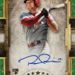 The Basics: Each standard autograph that will show either rookies, veterans or legends will have a Purple (/50 max), Blue (/25), Green (/15), Gold (/10), Orange (/5) or 1/1 Red parallel. New for this year will be dual autos limited to no more than 10 copies. ... Silver Signatures and Golden Graphs are back with will spotlight notable names with the same rainbow as last year -- Purple (/25), Blue (/20), Green (/15), Gold (/10), Orange (/5) and 1/1 Red versions. ... New this year will be Career Year Autos that focus on memorable campaigns with the standard cards limited to just 25 copies and a Five Star parallel that will be a 1/1. ... Five Star Signatures will spotlight as many as 50 players with some of them adding inscriptions that will be limited to just 20 copies max. ... Also in play will be Auto Jumbo Patches (/TBD) each with a Gold (/25), Silver Rainbow (/10) as well as Team Patch, MLB logoman, Laundry tag and Majestic patch parallels -- all 1/1s -- just like last year. ... Also 1/1 creations will be Five Star Cut Autos with notable names in MLB history getting another look on cardboard as well as a selection of celebrities in their own cut auto set.