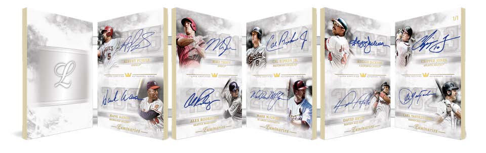 The Basics: Among the standard autos will be Home Run Kings (/15) with Red (/10), Blue (/5) and 1/1 Black parallels. There will be 50 (not a typo) autos on one 1/1 card -- Home Run Kings Ultimate Book -- while the Home Run Hitters Ultra Book (also a 1/1) will have the "top home run hitters in the game." Also in play will be Hit Kings and Masters of the Mound with the same rainbow, along with other books -- Hit Kings Ultra Book (10 autos), Hit Kings Ultimate book (40 autos), Masters of the Mound Ultra (10 autos) and The Greatest Ultra Book (30 autos). ... Auto Relics will include Home Run Kings with Red and Black parallels (same volume) and Auto Patches (/5) and a 1/1 Black, and then Home Run Kings Auto Patch Dual and Triple Books along with Hit Kings Auto Relics and patches (same parallels). ... It also will include a Hit Kings Autograph Patch Dual Book Card (1/1), Masters of the Mound Auto Relics and Patches as well as Dual Books and Letter Books. Rounding things out will be Cut autos, cut auto Relics and cut auto bat knobs -- all 1/1 creations. The lineup is virtually identical to the rookie release.