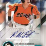 The Basics: The basic set will consist of 200 cards with a number of parallels that were not fully disclosed in advance. There will be Green, Red and Orange parallels for sure along with autograph parallels, too. There will be Leaps & Bounds cards -- a subset -- while inserts will once again include Ben's Biz and Promo Night Uniforms along with team logo sticker box-toppers. Also new Distinguished Debut Medallions, which will be among the hits, and that line will once again include Fragments of the Farm and Promo Night Uniform Relics. These will also have parallels (details TBD). ... On the autograph front, there will be base autos with Green (/TBD), Red (/10) and 1/1 FoilFractor parallels (and other colors possible) along with Splash of the Future autos that will spotlight the biggest prospects and be found one per case.