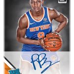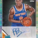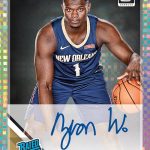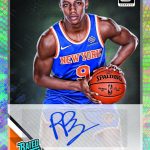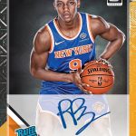 The Basics: The Fast Break version includes two fewer packs but five cards in every one this time with an insert card in every pack, too. Rated Rookie autographs will include base, Gold (/10) and 1/1 Black autos but with stickered sigs based on the mocks. ... Base parallels will include Holo, Purple (/95), Red (/85), Blue (/50), Pink (/20), Gold (/10) and 1/1 Black. ... Holo Fast Break inserts will include Elite Dominators, All-Stars, The Rookies, All Clear for Takeoff, Star Gazing and Rainmakers. ... Fast Break Signatures will include past and present players. ... Boxes carry a suggested retail price of $90.